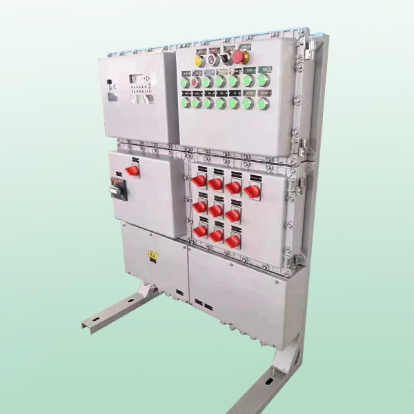 3.非標(biāo)配電箱:外殼采用鋼板焊接成型,表面噴塑。分主腔和接線腔,均采用隔爆型結(jié)構(gòu),內(nèi)可選裝高分?jǐn)鄶嗦菲鳌⒔涣鹘佑|器、熱繼電器、控制按鈕、信號燈等元件,通過操作殼蓋上的手柄實現(xiàn)分合,動作性能可靠,并設(shè)有指示燈。進(jìn)出線采用鋼管或電纜布線均可,進(jìn)出線口方向及內(nèi)部元件可由用戶要求而定。