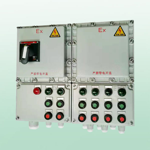 2.外殼采用鑄鋁合金壓鑄成型,表面噴塑。主腔采用隔爆型結(jié)構(gòu),接線腔增安型結(jié)構(gòu)。內(nèi)可選配裝斷路器、交流接觸器、熱繼電器、變壓器、熔斷器、Ex防爆控制按鈕、信號(hào)燈、轉(zhuǎn)換開關(guān)等。配電箱采用模塊化設(shè)計(jì),各種回路可以自由組合,電器元件選型可由用戶而定,其結(jié)構(gòu)緊湊、外形美觀。進(jìn)出線采用鋼管或電纜布線均可,進(jìn)出線口方向可由用戶要求而定。
